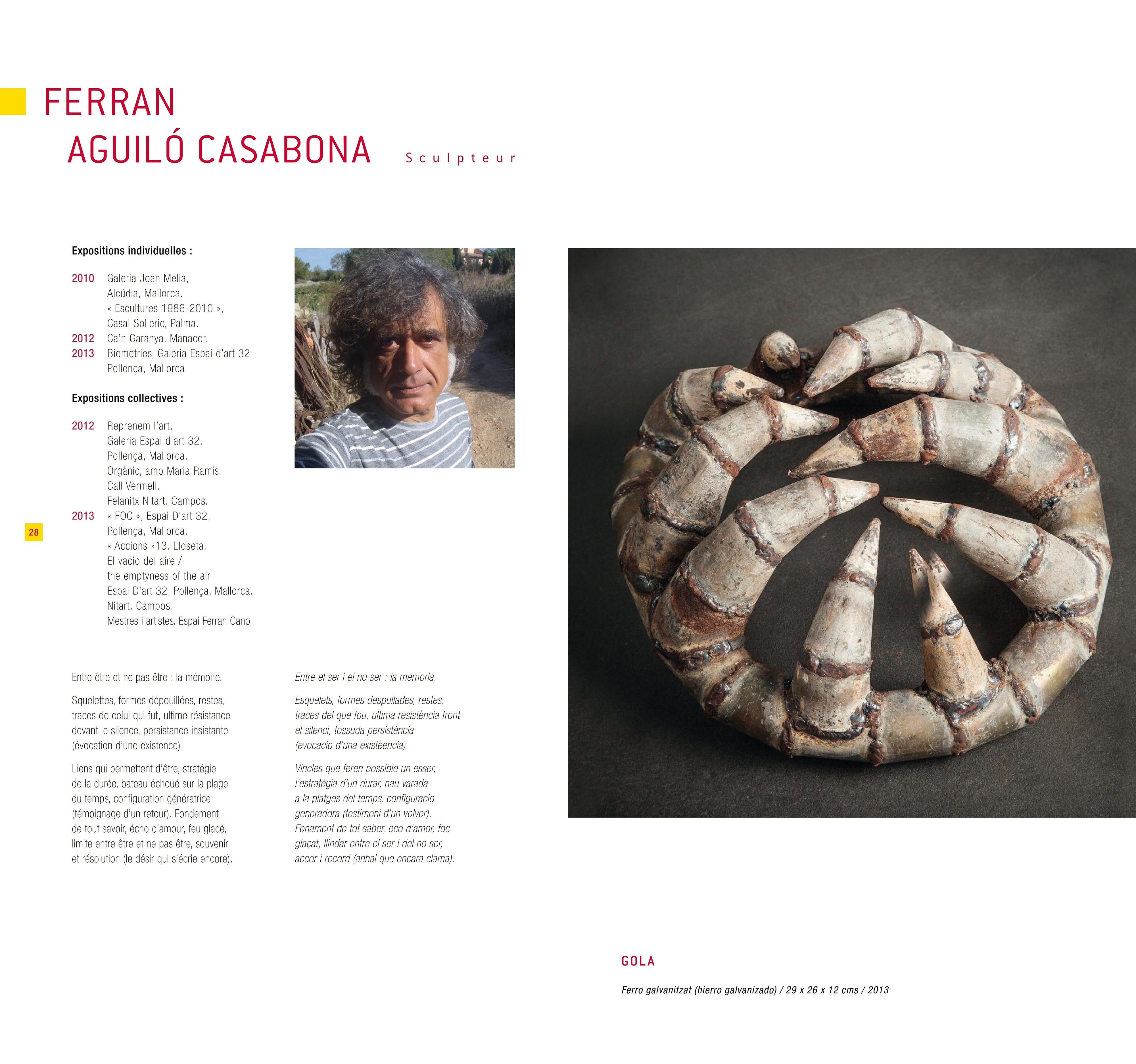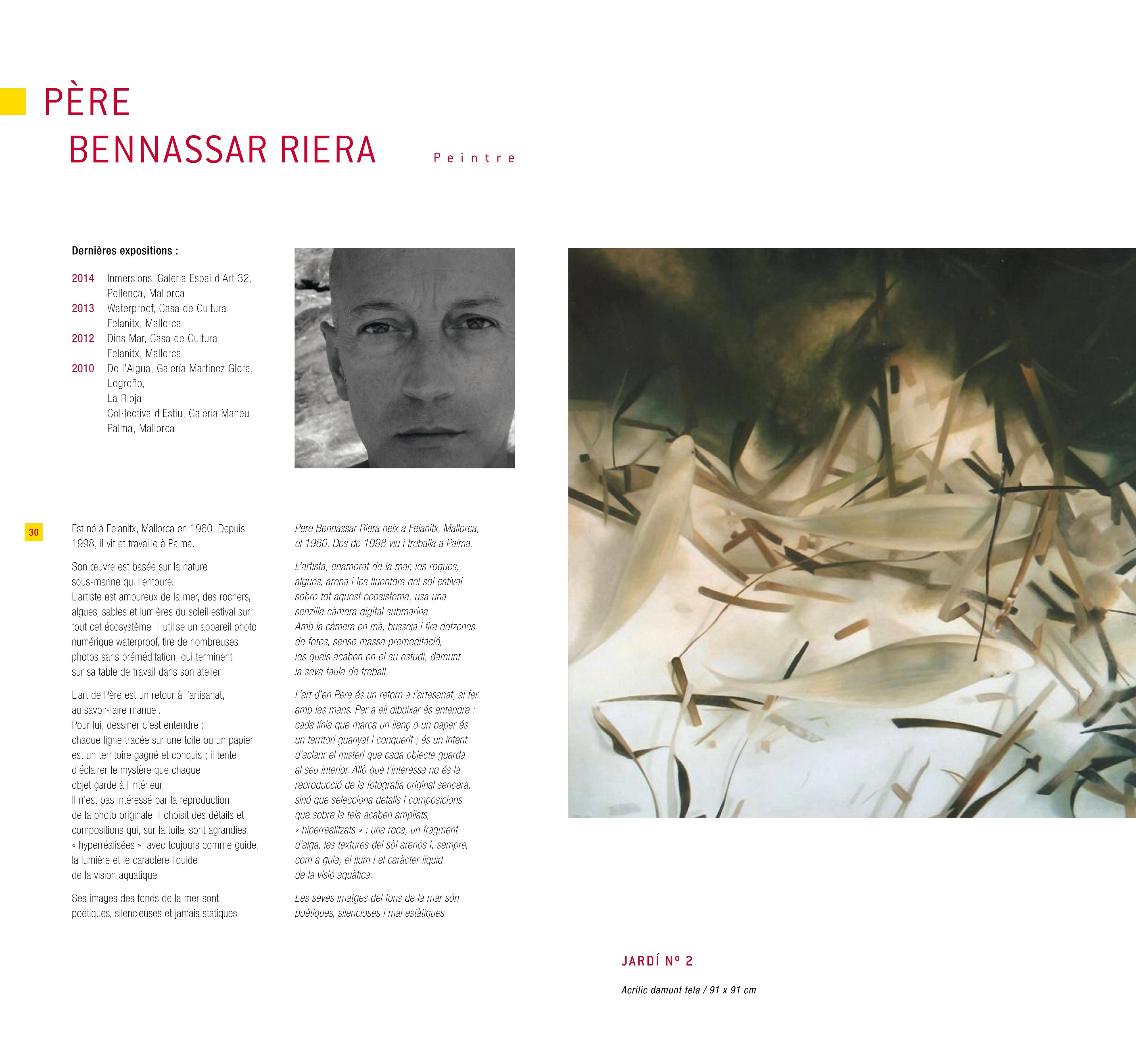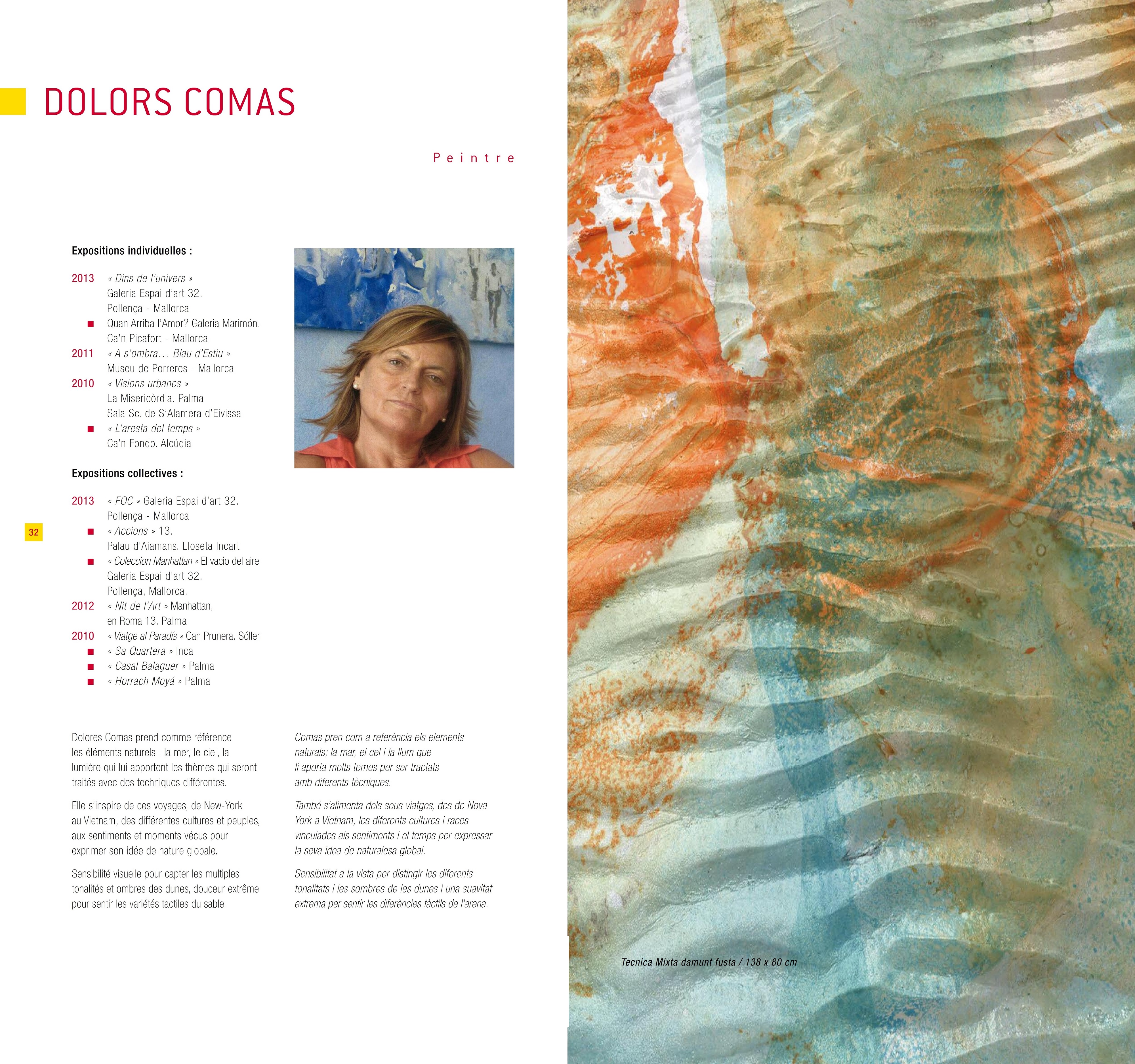 Miquel Planas Rossello - Père Bennassar Riera - Antoni Socias Artistes de Menorca: Francesc Florit Nin - Laetitia Lara - Matías Quetglas - Nuria Román Informacions pràctiques de contactes Mallorca: Dolores Pérez, 610 253 265 info@espaidart32.com Menorca: Anna M. Bagur, 650 231 558 abagur40@gmail.com