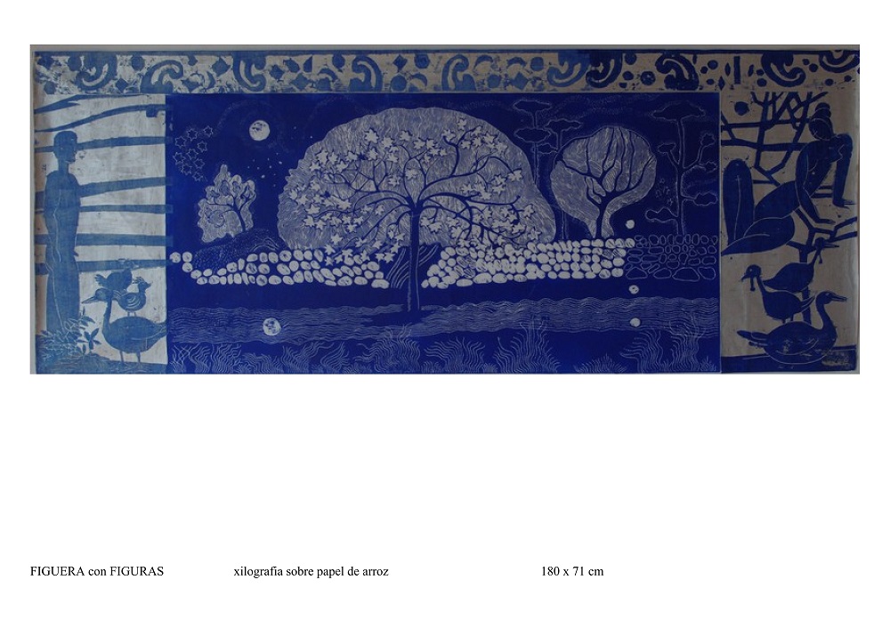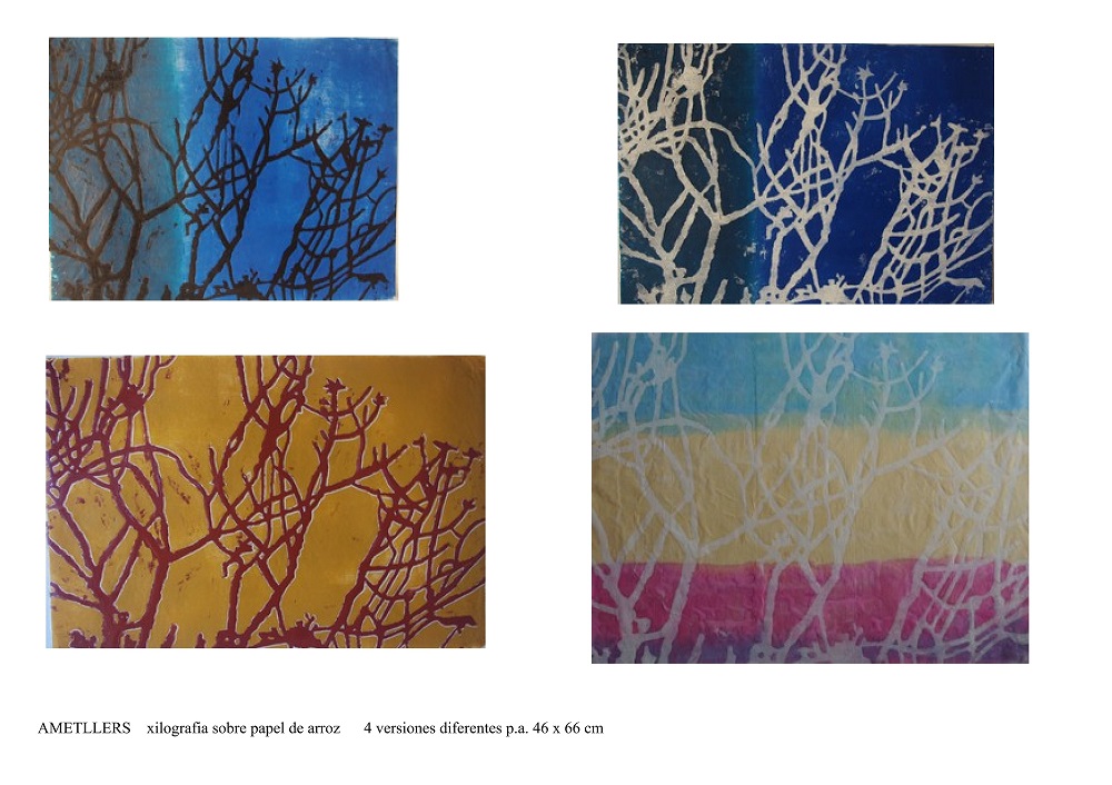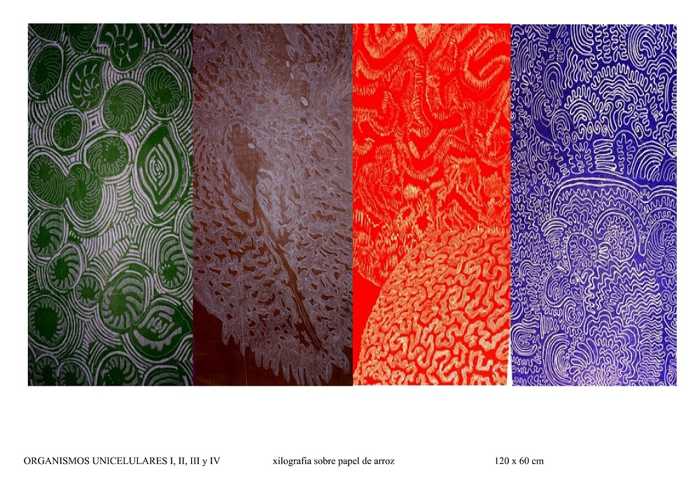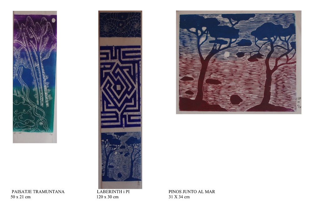 La técnica empleada es en todos los casos xilografía (talla en madera, en estas contrachapado) sobre papel de arroz. Las tintas que se emplean son las usuales del grabado calco gráfico, tintas al oleo. Las planchas están realizadas en 2013-2014 En su mayoría han sido impresas en mi propio taller. Algunos motivos (organismos unicelulares I-VI) están inspirados en fotografías macroscópicas procedentes de un libro de fotografías de biología y representan protozoos del mediterráneo y esponjas. Otros motivos, como la ola según Hokusai estñn inspirados en el grabador japonés del s.XVI, Hokusai, cuyos grabados fueron importados a Europa en la época del impresionismo e insopiraron a múltiples artistas, entre ellos Van Gogh. Otros temas, como las anémonas o las cosmologías están inspirados en el mar y en el cielo respectivamente. Mirar las estrellas en este lugar donde vivimos es un privilegio y bucear en el agua del mar, observando los cambios en la arena de las dunas y la reflexión de la luz a través de las olas.... ISABELA LLEO CASTELLS Nace en Madrid 1962 Curriculum Formación 1980 Abitur, Colegio Aleman de Madrid 1982-84 Facultad de Bellas Artes San Fernando, Madrid 1984-86 Universidad de Bellas Artes, Munich (Prof.Troeger, Pintura) 1986-91 Universidad de Bellas Artes y Cinematografia, Hamburg. Contacta con artistas internacionales: Herman Nitzsch, Joseph Beuys, Henrik Christiansen, Helke Sander, Eu Nim Ro, Berndt Koberling, Klaus Boehmler, Franz Ehrhardt Walter, y otros con la mayoría de los cuales asiste a seminarios de larga duración 6-24 meses. 1991 Licenciatura ARTE Y COMUNICACIÓN VISUAL. 1991-95 Artista de creación libre en Hamburgo 1994 DTP-Akademie, diseño gráfico por ordenador 1995 Beca del M. de Cultura para estudios de Postgrado de imagén asistida por ordenador Universitat Illes Balears (Master of Arts Image Synthesis and Computer Animation) 1996 Vive en Mallorca y trabaja como escultora, pintora y profesora 1999 Estancia en Tengenenge, Artists Comunity of Sculptors, Zimbabwe, AFRICA 2010 Licenciatura en Psicología Clínica por la UNED 2011 Colectiva de escultura HOTEL LA RESIDENCIA, DEIA Presentación en Sculpture Network, Guggenheim Bilbao 2012 Palmyra Sculpture Centre. Mallorca, Artist in Residence S’Escorxador,Marratxi, Mallorca 2013 Woman & Water, Palmyra Sculpture Center, Mallorca Laberintos de Miradas, Iglesia Vieja de Ses Salines, Mallorca Ellas y Arte, Artquestion, Ourense El coloquio de los pájaros. Galeria Espai d'Art 32, Pollença, Mallorca 2014 Museo Nacional del Grabado, Marbella Fundacion Coll Bardolet. Valldemosa Colectiva de grabado, Galeries MiCeR32, Pollença, Mallorca OBRAS EN COLECCIONES Colección Pedro Serra, Mallorca Colección Fundación Alfaz del Pí, Alicante Colección Hamburger Wasserwerke Colección Otto Versand Colección Münchener Elektrizitätswerke Colección Mathias Kühn Colección Sa Bassa Rotja Colección Annette Soeckeland Colección Klein, Andratx, Mallorca Colecciones privadas en Alemania, Holanda, Polonia, España, Nueva York, Noruega, California, Dinamarca. |